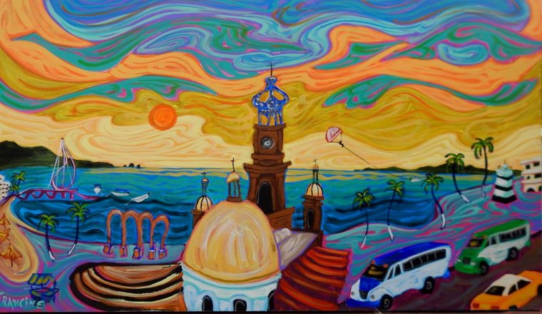Happy New Year…Feliz año nuevo to all! December 31 brought back a bittersweet memory of a Vallarta legend, one of my very favourite shady ladies, and a fellow gaypv.com correspondent. I took possession of my Vallarta home in October of 2018…one of the first things I did was track down artist Francine Peters and tell her how much I loved her work and wanted it to be the star of my new home. Over she came to inspect my chosen wall and talk colors and theme…we had met in past years but over a few beers we became fast friends…she decided the work would be about a 5 by 8 foot piece. She promised to deliver it by the new year but she warned me later that she was having a hell of a time getting a canvas of that size made…but on the afternoon of December 31, 2018, as promised, there was Franny below my terrace hollering up to let her and my H U G E new baby in :) As many will realize, this is one of her last works and I am very proud to own it and to cherish memories of this very special gal!