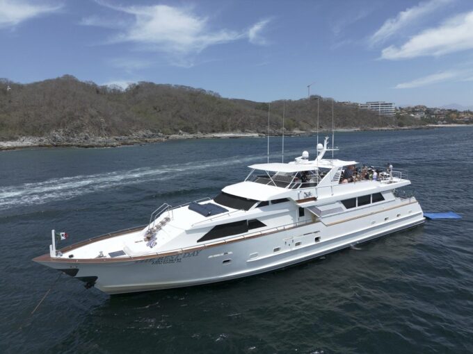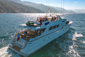 The yacht will travel to one of many gorgeous locations on the Banderas Bay and then drop anchor at a secluded beach where guests will be able to enjoy the water with provided water toys or just chill and relax onboard.