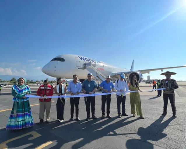 The inaugural flight arrived to the Gustavo Díaz Ordaz International Airport Puerto Vallarta at 4:00 p.m. carrying 402 passengers who were met with great joy. mariachi music and welcome cocktails.