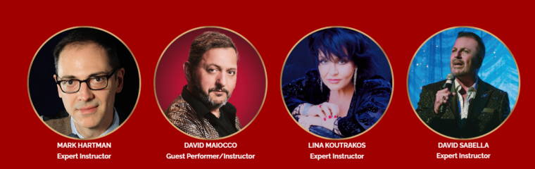 A typical day consists of a morning class with Lina, a vocal tech session with David, an afternoon seminar and work sessions with music directors, an evening performance by one of our guests, and a nightly open mic in the piano bar where students will have the opportunity to sing for the audience after the show.