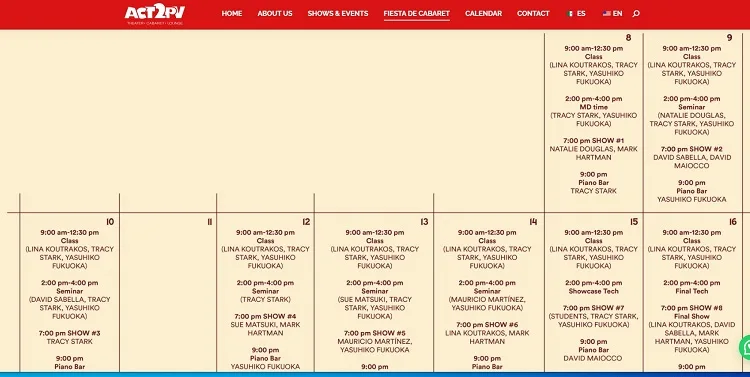 Act2PV announces Cabaret Workshop named Fiesta De Cabaret NOVEMBER 8-16, 2024 featuring some of the world’s top cabaret industry professionals giving 16 students a unique opportunity to refine their skills. This 10 day workshop features daily group classes, seminars, and shows by luminaries in the field plus nightly opportunities to perform make this a rare learning experience.