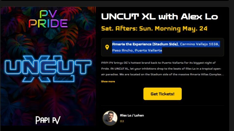 PAPI PV brings DC’s hottest brand back to Puerto Vallarta for its biggest night of Pride. At UNCUT XL, let your inhibitions drop to the beats of Alex Lo in a tropical open-air paradise. Located on the Stadium side of the massive Amaria Villas Complex with a heated pool, this space proves that it really is better when it’s a little longer. Dance until the sun rises over the mountains and paints the sky above your tropical paradise.