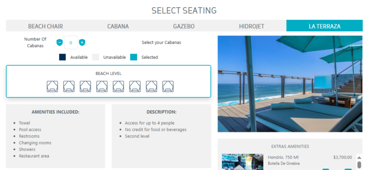 | La Terraza | Elevated VIP daybeds with panoramic ocean and dance floor views. |