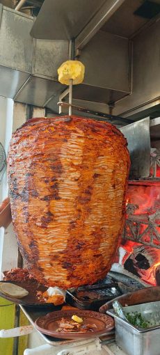 Carlos owns this sidewalk taquería serving good, quick and tasty food. Renowned for his tacos al pastor [shaved meat with pineapple] and pork kebob volcánes, full plates of a variety of tacos, quesadilla, fajitas, and tortas also are served. His salsa choices are good.