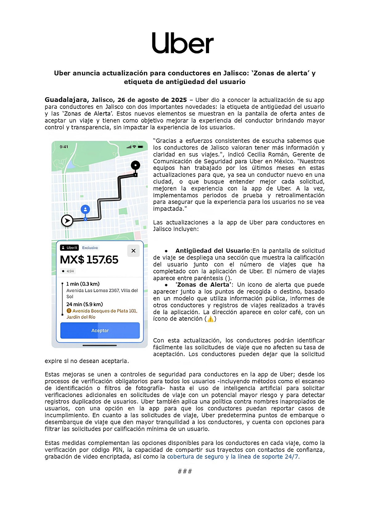 On August 26, 2025, Uber announced new additional updates to its driver app in Jalisco, which includes Puerto Vallarta. These newest updates include